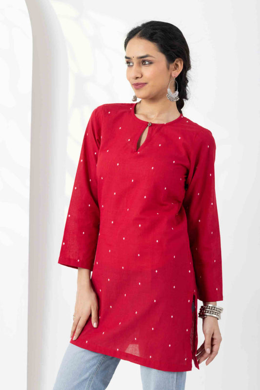 Sale 37%Heer Red Jamdani Keyhole Tunic