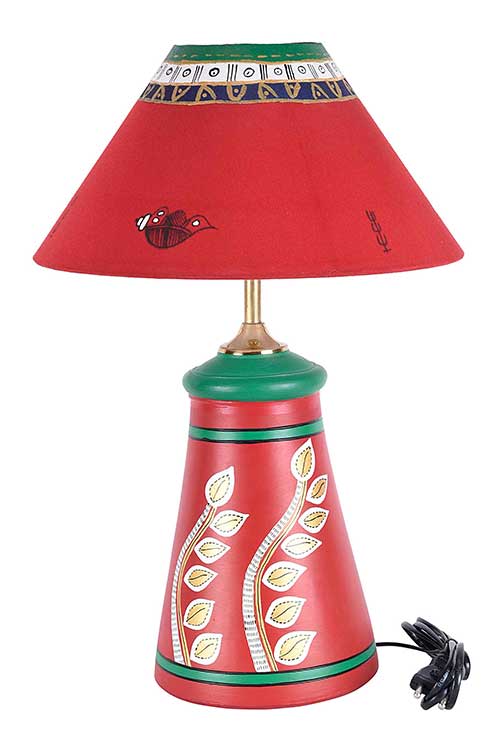 Tapered Shape Terracotta Warli Art Lamp (Orange)