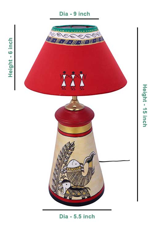 Tapered Shape Terracotta Warli Art Lamp (Yellow Red)