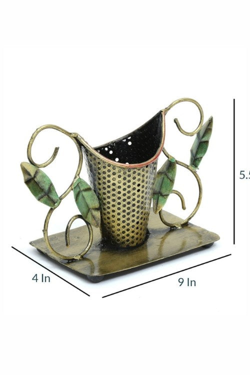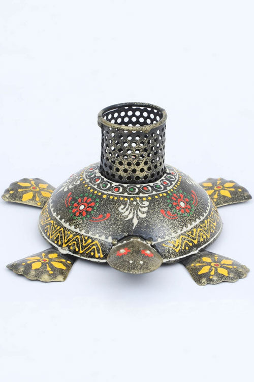 Metal Multicolour Hand Painted Tortoise Pen Stand