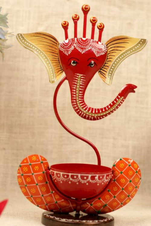 Sale 17%Iron Painted Ganesha Tea Light Red