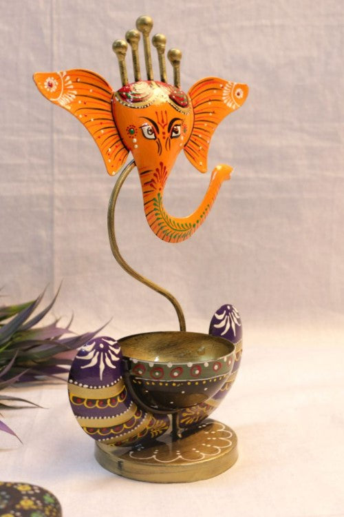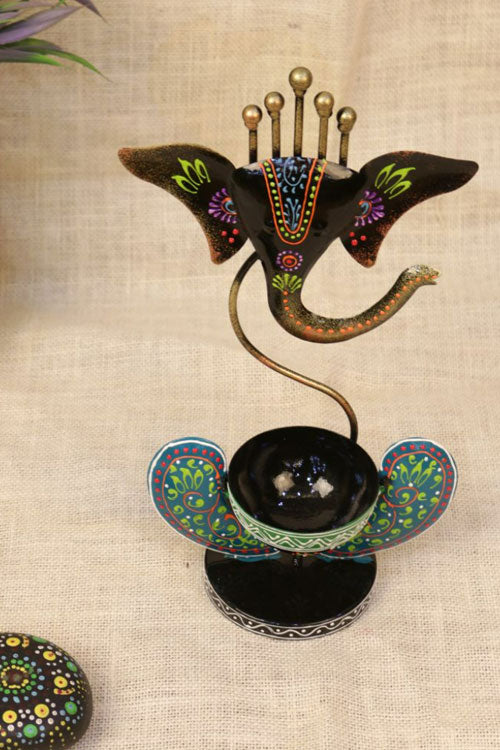 Sale 17%Iron Painted Ganesha Tea Light Black