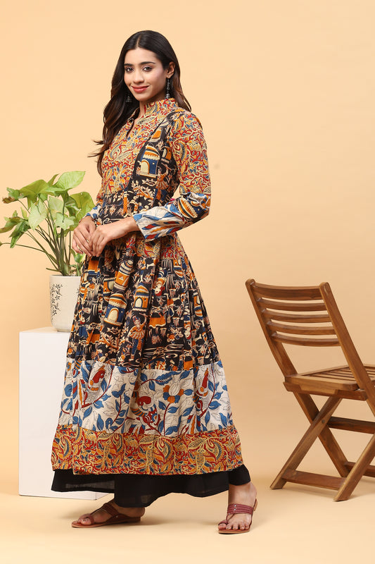 Sanchi Black Red Kalidar Kalamkari Kurta Palazzo Set
