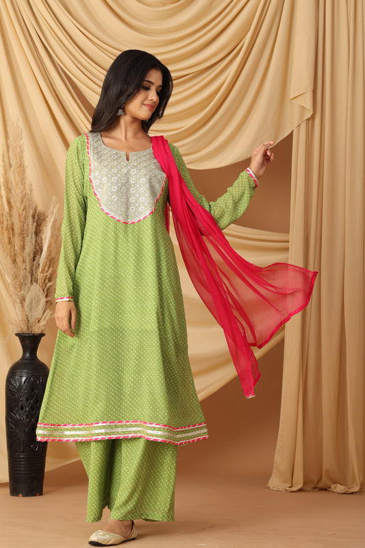 Pihu Zesty Lime Bandhani A-line Kurta Set