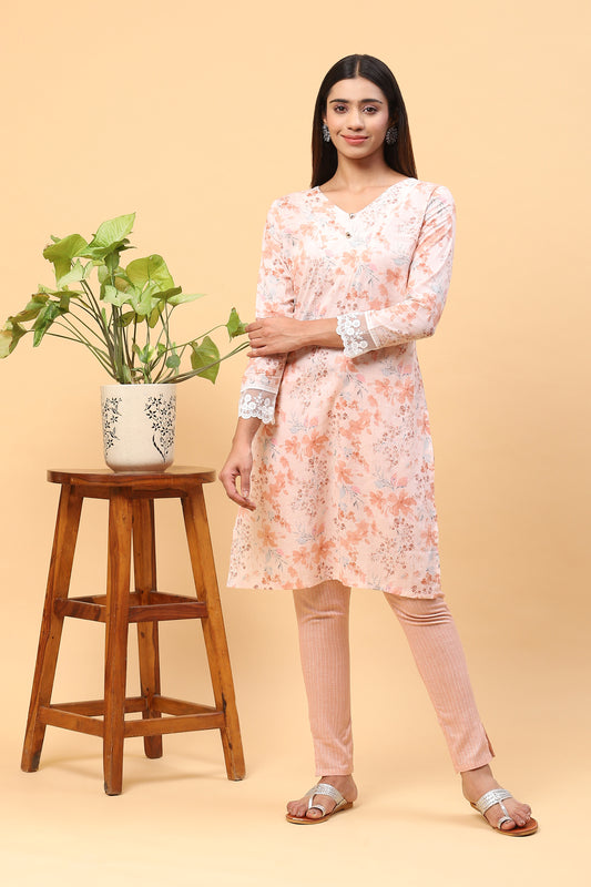 Sale 70%Pihu Crayola Peach Floral Kurta Set
