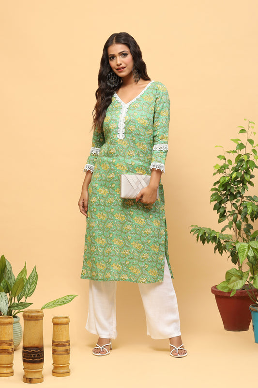Sale 62%Pihu Tea Green Floral Kurta Set