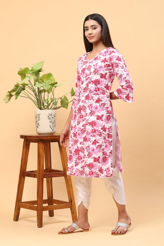 Pihu Daisy White Floral Print Kurta with Tulip Pants