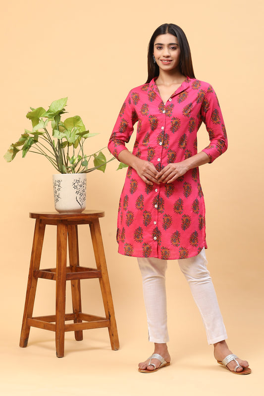 Pihu Fuschia Lace Kurta Set with Printed Dupatta