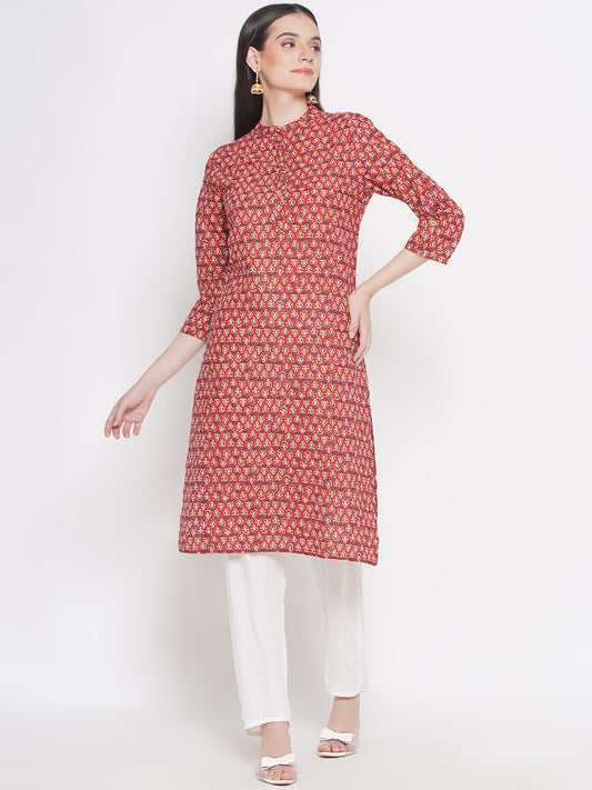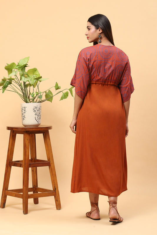 Sanchi Brick Orange Kaftan Dress with Front Tie-up
