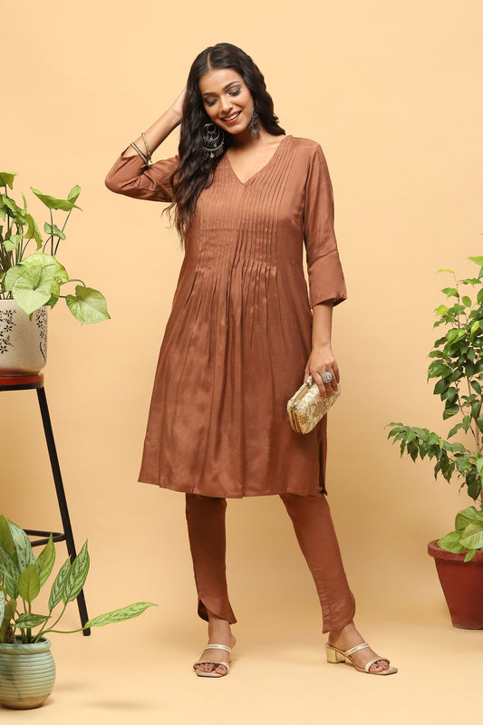Aseel Brown Block Print Kurta with Dhoti Pants