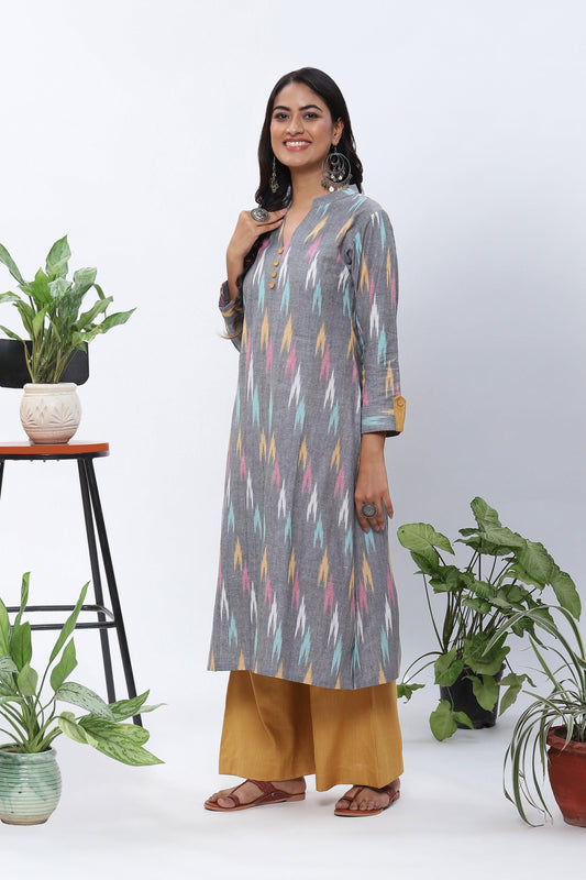 Shravani Grey Ikkat Kurta with Mustard Palazzo