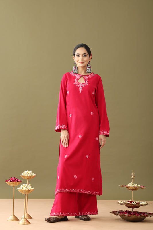 Utsaah Raspberry With Pink Aari Embroidery Kurta Set