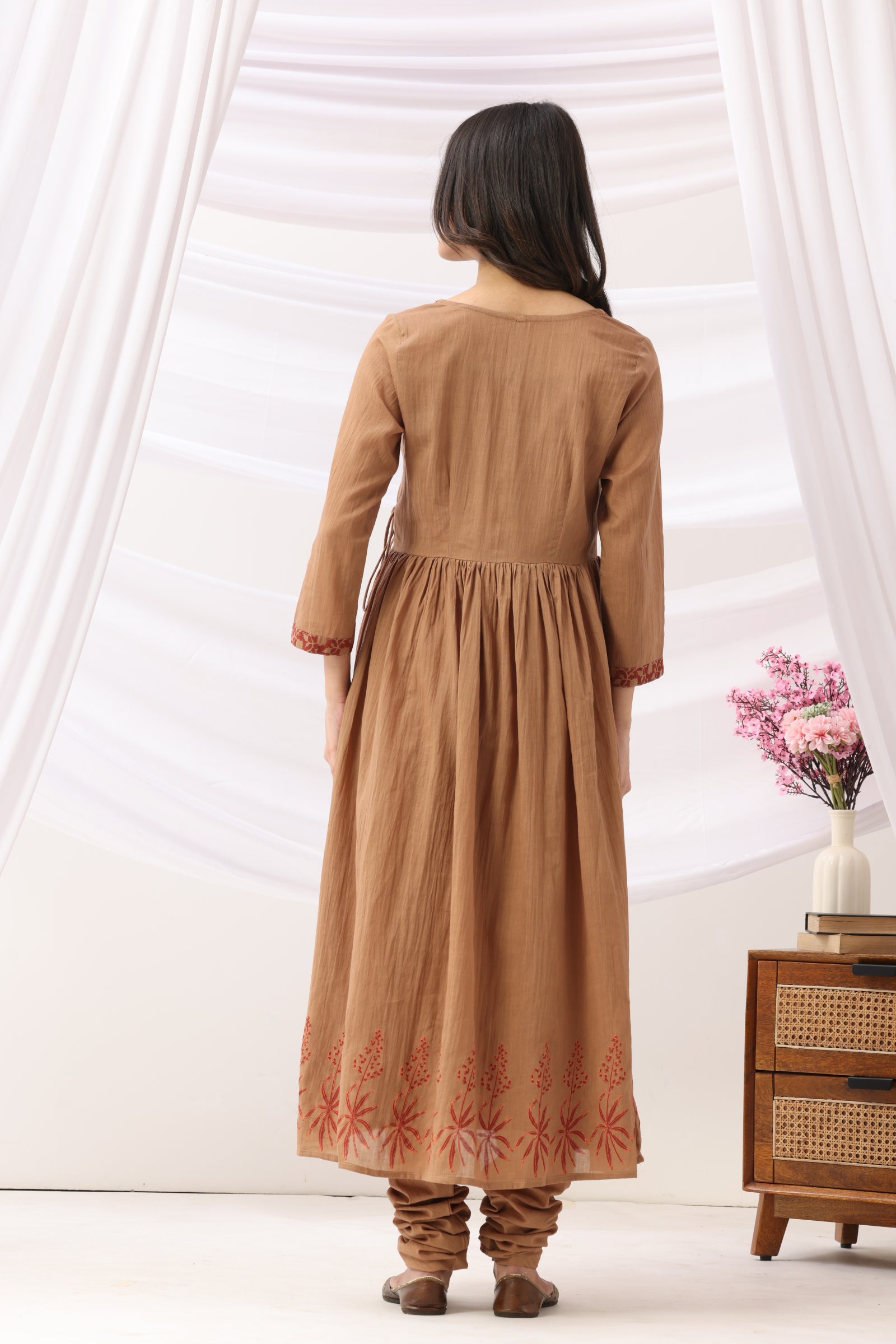 Style this brown cotton angrakha kurta with oxidized silver jewelry and classic flats for a heritage-inspired look. Whether worn for festive gatherings or cultural outings, this cotton angrakha style kurta captures the beauty of traditional Indian fashion with contemporary elegance.
