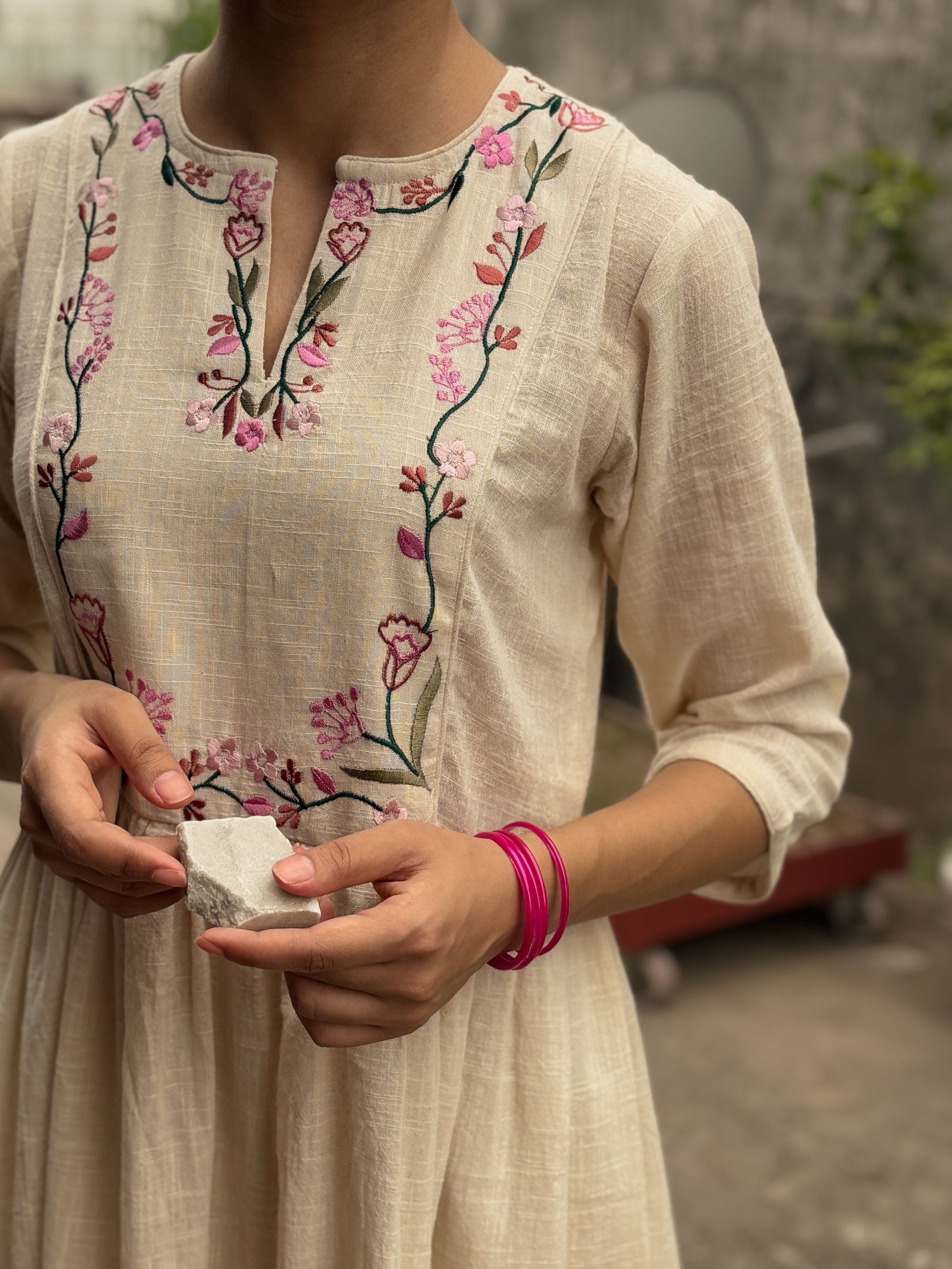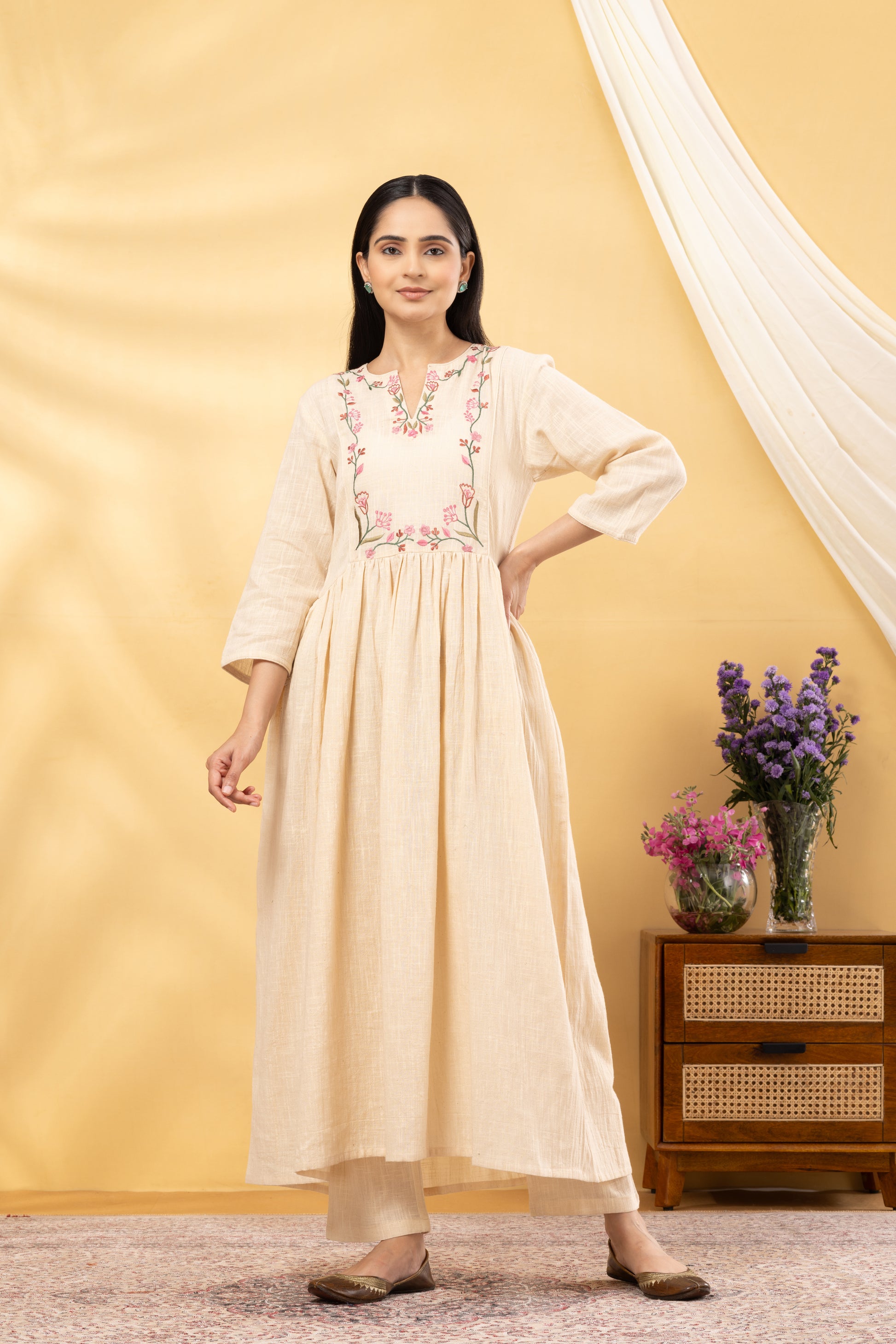 Embroidery: Subtle hand embroidery along the V-neckline and yoke for delicate refinement